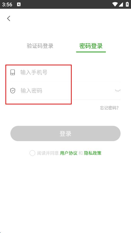 3、在密碼登錄界面,依次輸入手機號碼和密碼。