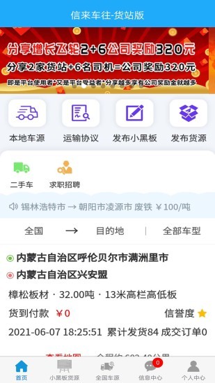 1、這里有海量車源和貨源,可以滿足供需雙方查找到需求訂單;