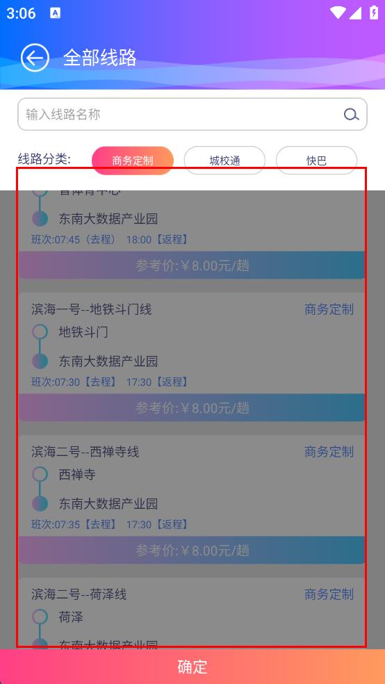 3、在全部線路頁面,可根據(jù)線路分類或在搜索框輸入線路名稱,查找所需線路,找到后點擊對應(yīng)線路,即可查看該線路的班次、參考價等詳細信息。