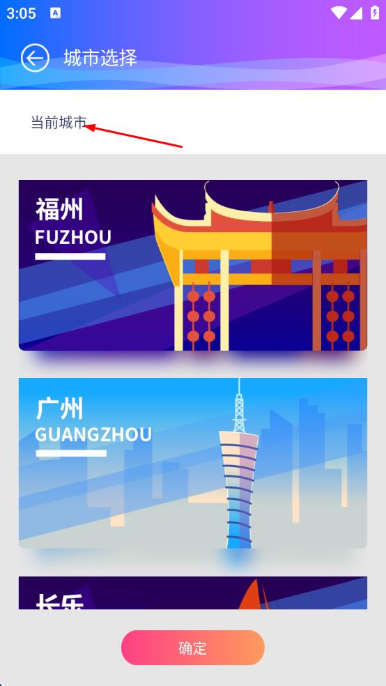 1、打開交通出行軟件,進入城市選擇頁面,選擇好當前城市后,點擊“確定”按鈕,進入主界面。
