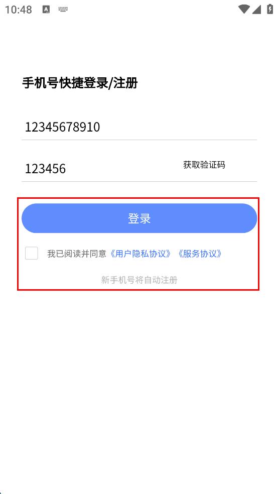 4、勾選“我已閱讀并同意用戶隱私協(xié)議,服務協(xié)議,最后點擊“登錄”按鈕,即可完成安全考試APP的手機號登錄操作。