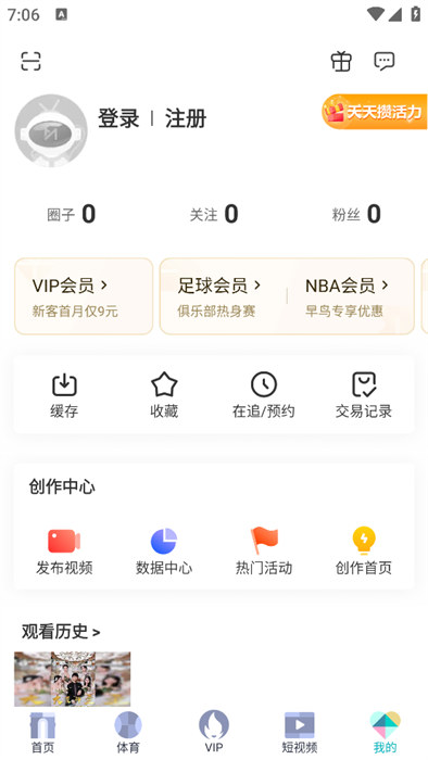 2、進(jìn)入我的頁(yè)面內(nèi),點(diǎn)擊正上方的登錄/注冊(cè)的區(qū)域位置。