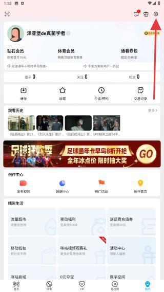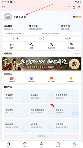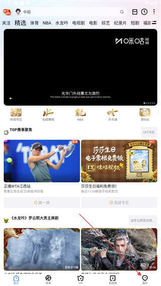 1、啟動(dòng)咪咕視頻的應(yīng)用,進(jìn)入首頁(yè)點(diǎn)擊右下我的圖標(biāo)。