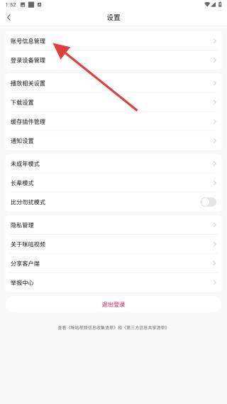 3、在設(shè)置的頁(yè)面內(nèi),找到并點(diǎn)擊賬號(hào)信息管理。