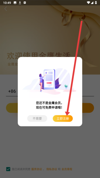 3、若手機(jī)號(hào)沒(méi)有注冊(cè)過(guò),可點(diǎn)擊彈窗中的立即注冊(cè)按鈕,進(jìn)行注冊(cè)。