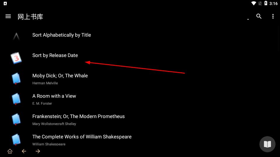 1、進入網(wǎng)上書庫界面,點擊Sort by Release Date選項,按書籍發(fā)布日期排序列表,便捷篩選目標書籍。