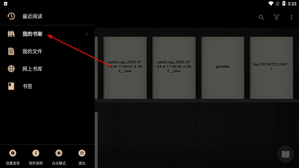 2、點擊左側(cè)菜單欄我的書架,查看已存儲的書籍文件,管理本地閱讀資源,快速定位閱讀內(nèi)容。