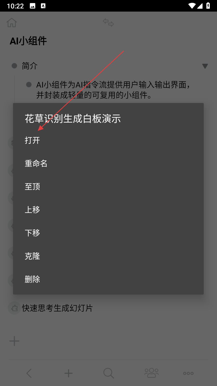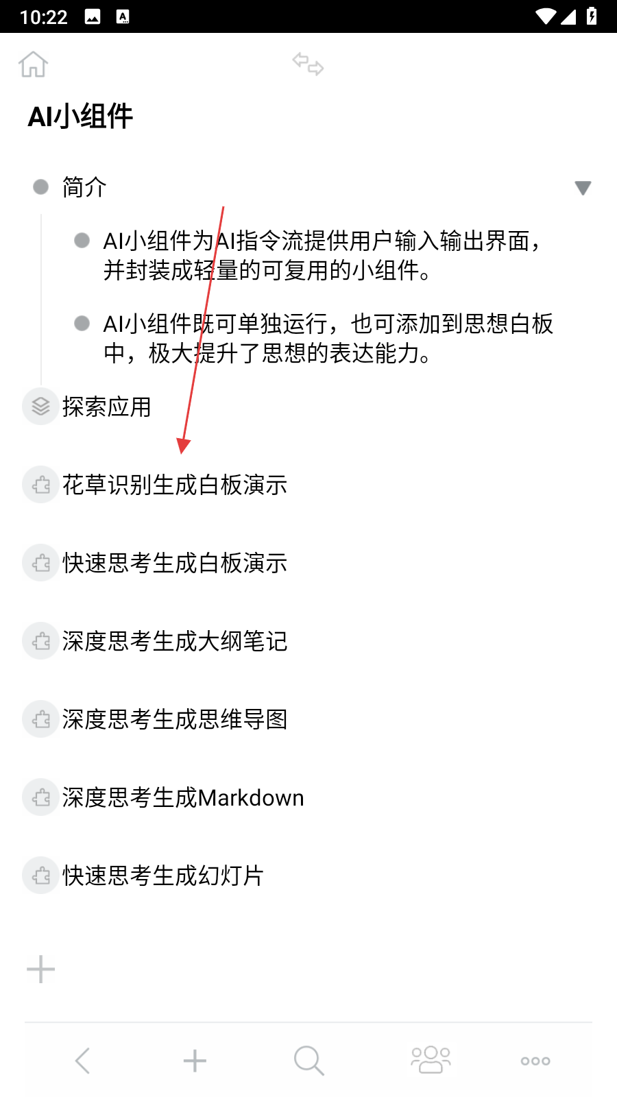 2、在AI小組件頁面,選擇花草識別生成白板演示功能。