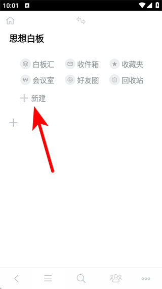 2、進入思想白板的頁面后,我們需要點擊新建,將會彈出選項。