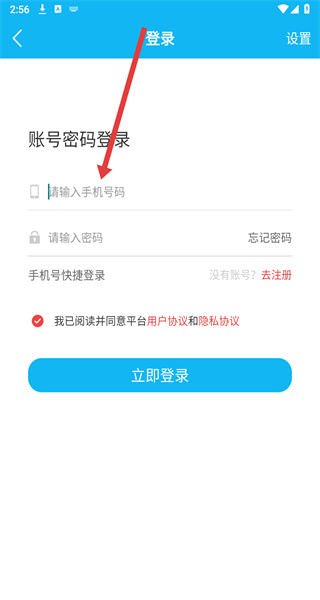 4、登錄界面輸入手機(jī)號(hào)碼和密碼,勾選協(xié)議后點(diǎn)擊“立即登錄”,完成賬號(hào)登錄。