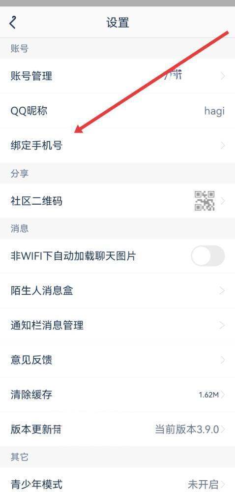 3、在設(shè)置頁面,點(diǎn)擊綁定手機(jī)號的選項(xiàng),進(jìn)入綁定手機(jī)號頁面。