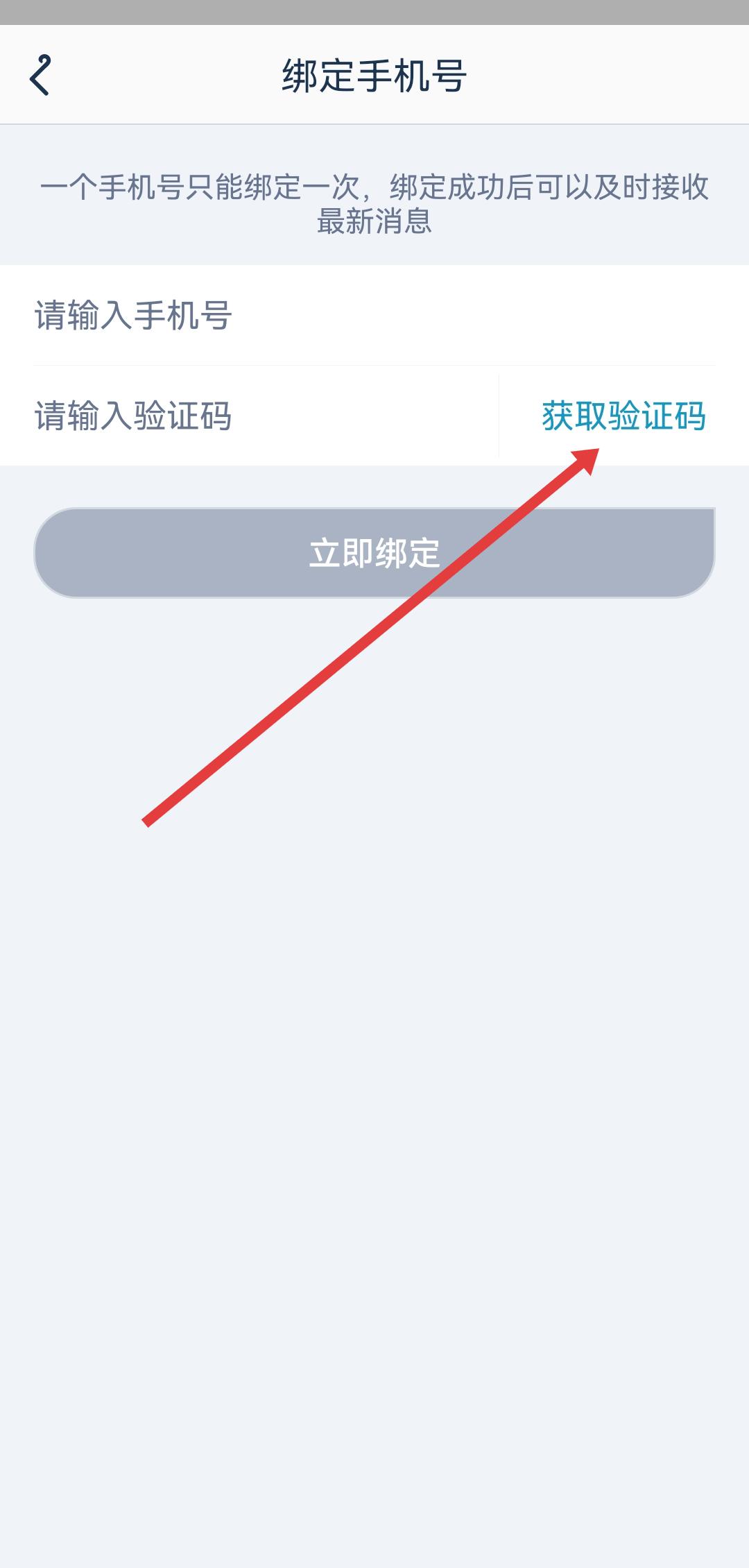 4、在綁定手機(jī)號頁面,輸入手機(jī)號和驗(yàn)證碼,點(diǎn)擊立即綁定按鈕完成綁定。
