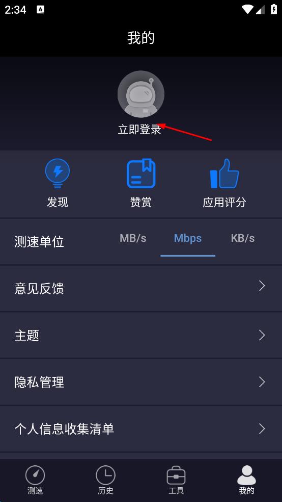 1、打開測速軟件,點擊右下角我的,進入我的頁面。