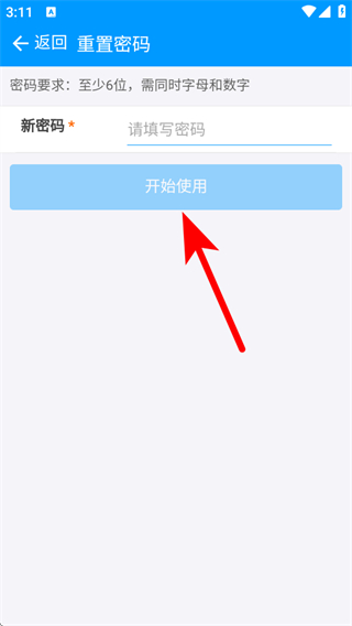 4、進(jìn)入頁面設(shè)置新密碼后點(diǎn)擊開始使用,完成賬號密碼找回操作。