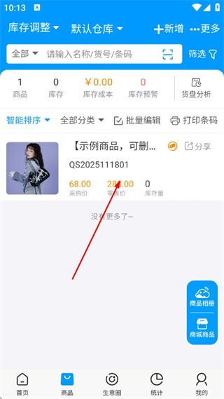 1、打開秦絲進(jìn)銷存APP,在首頁點(diǎn)擊商品選項,進(jìn)入商品管理頁面。