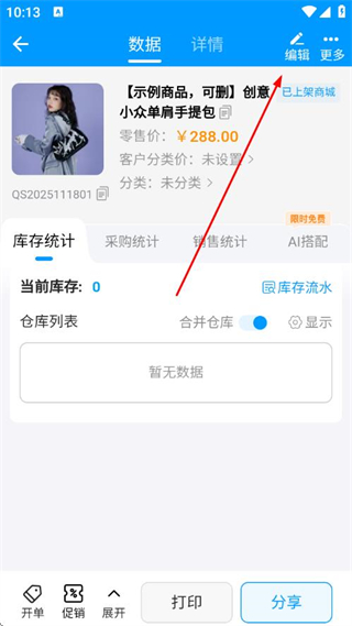 3、在商品數(shù)據(jù)詳情頁面點(diǎn)擊編輯選項,進(jìn)入商品信息編輯頁面。