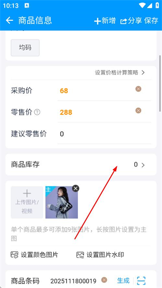 4、在商品信息編輯頁面點(diǎn)擊商品庫存選項,進(jìn)入庫存數(shù)量調(diào)整頁面。