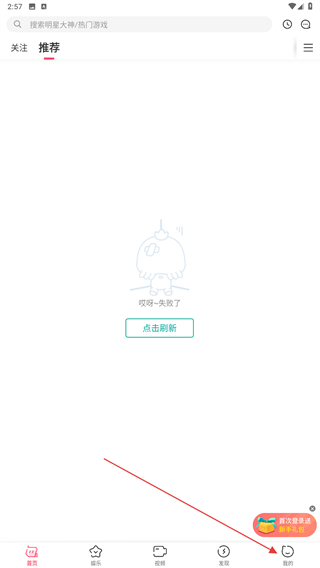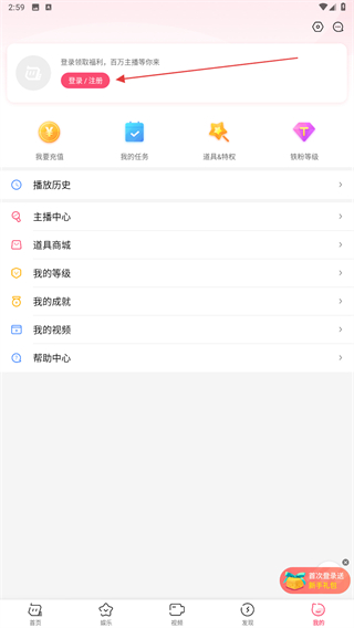 2、進入到我的頁面內(nèi),用戶需點擊登錄/注冊的功能按鈕。