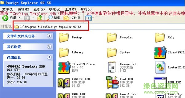 5、再將“Guobiao Template.ddb(國標(biāo)模板)”文件復(fù)制到Design Explorer 99 se 根目錄中,并將其屬性中的只讀去掉。