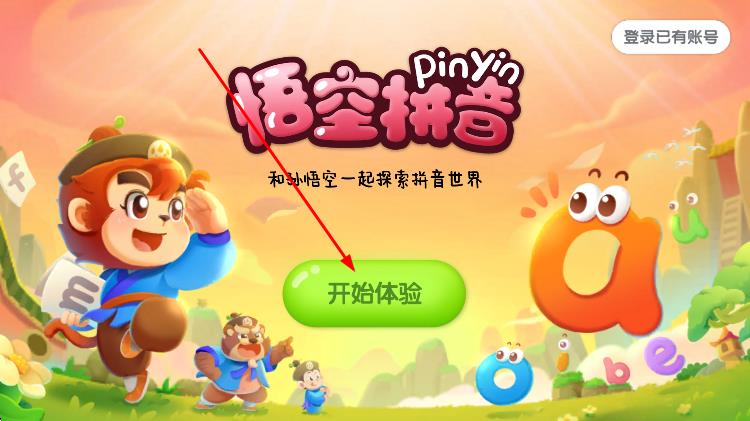 1、打開(kāi)悟空拼音,點(diǎn)擊開(kāi)始體驗(yàn),進(jìn)入主界面。