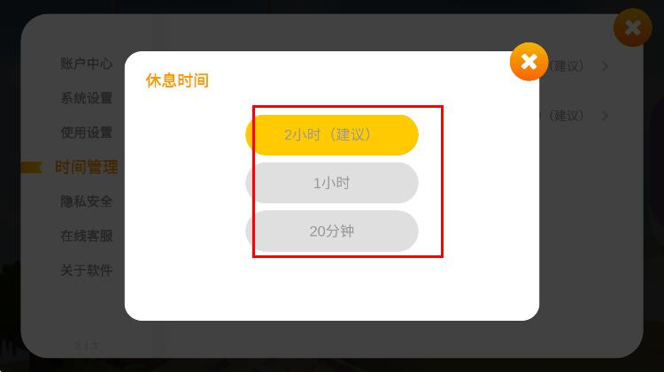 4、在彈窗中選擇合適的休息時(shí)長(zhǎng),即可完成設(shè)置。