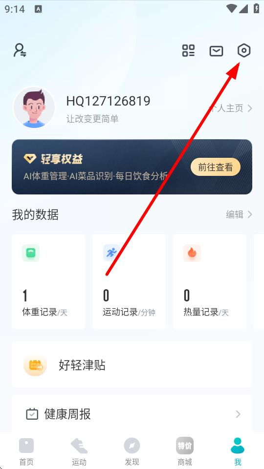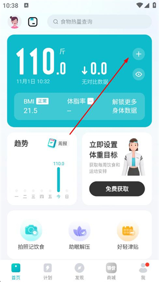 1、打開(kāi)好輕APP,點(diǎn)擊首頁(yè)體重?cái)?shù)據(jù)區(qū)域的+。