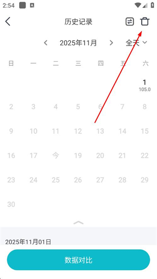 4、在歷史記錄頁(yè)面點(diǎn)擊右上角的刪除圖標(biāo),進(jìn)入記錄選擇頁(yè)面。