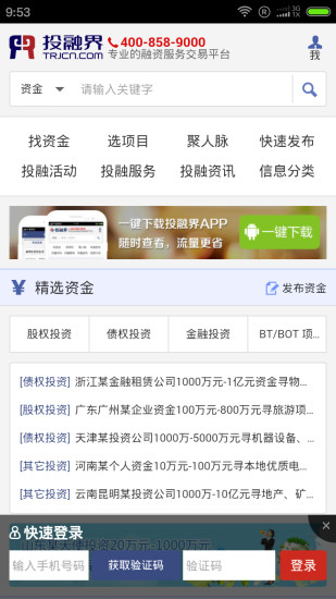 1、作為融資服務(wù)交易平臺(tái),每天有大量的項(xiàng)目信息在平臺(tái)發(fā)布。上線至今已超110萬個(gè)優(yōu)質(zhì)項(xiàng)目在平臺(tái)競資。