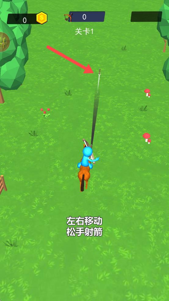 1、觸屏滑動操作:通過左右滑動屏幕控制馬匹橫向移動,點擊任意位置發(fā)射普通箭矢,長按屏幕右側區(qū)域蓄力釋放特殊箭矢,滑動屏幕上方能量條可觸發(fā)。
