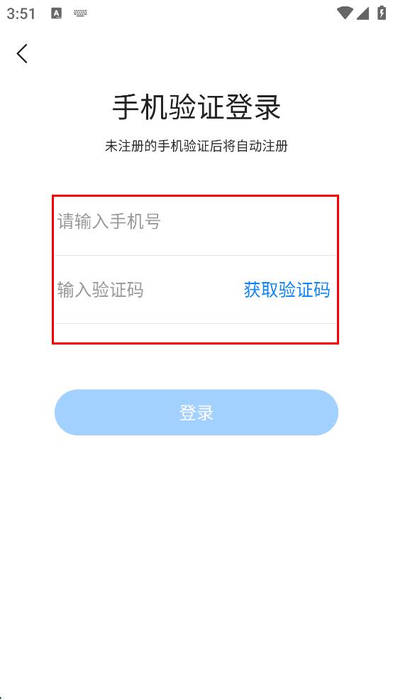 2、在APP主界面,找到“手機(jī)驗(yàn)證登錄”按鈕并點(diǎn)擊,進(jìn)入手機(jī)驗(yàn)證登錄頁(yè)面。