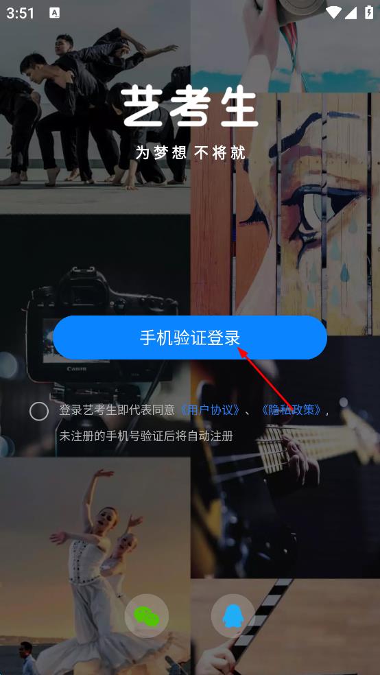 4、將收到的驗(yàn)證碼填入驗(yàn)證碼輸入框,點(diǎn)擊“登錄”按鈕,完成藝考生APP的登錄操作。