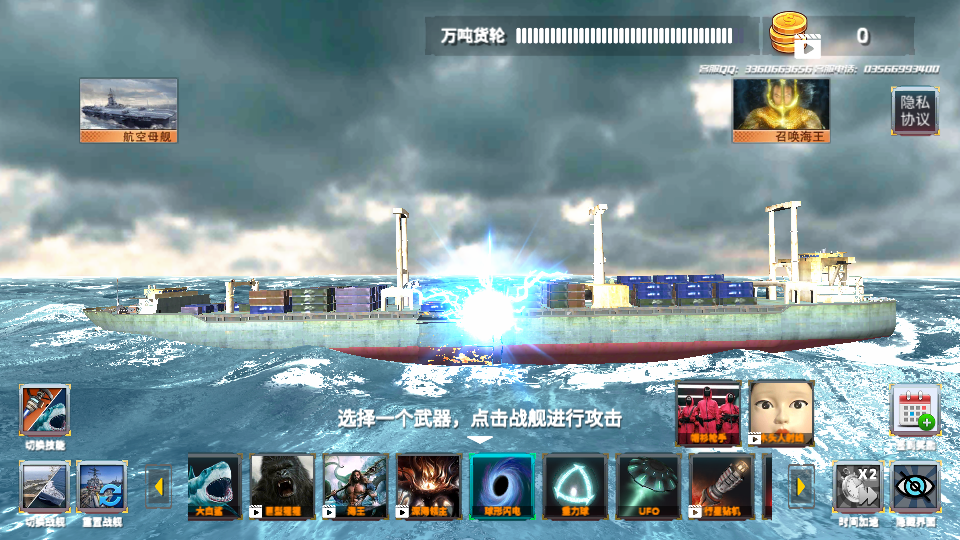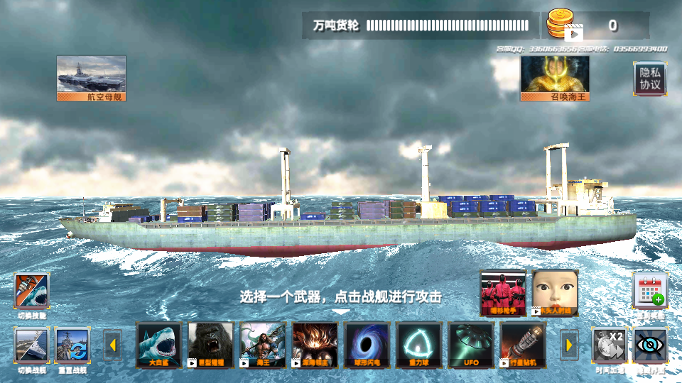 2、多樣場景任務(wù):設(shè)置豐富的關(guān)卡場景,從平靜海面到暴風(fēng)雨海域,每個場景有不同的破壞任務(wù),如擊沉指定數(shù)量戰(zhàn)艦、抵御怪獸進攻等,保持游戲的新鮮感與挑戰(zhàn)性。