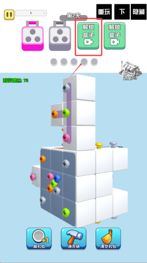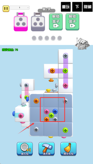 2、特別設(shè)計了50余個創(chuàng)意挑戰(zhàn)關(guān)卡,引入動態(tài)傳送帶、自動旋轉(zhuǎn)卡扣等特殊障礙物,需要快速觀察并調(diào)整消除策略,考驗玩家的臨場反應(yīng)與空間思維能力。