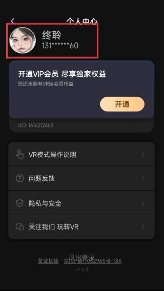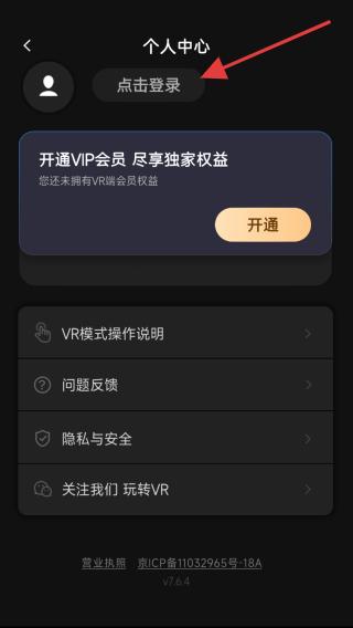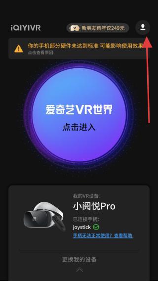1、打開(kāi)愛(ài)奇藝VRApp,點(diǎn)擊界面右上角的個(gè)人頭像跳轉(zhuǎn)至該頁(yè)面。