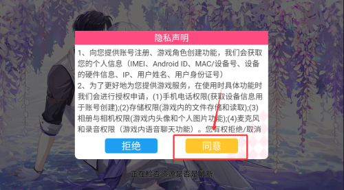 1、首次啟動(dòng)需閱讀并確認(rèn)用戶協(xié)議,完成授權(quán)后進(jìn)入游戲主界面。