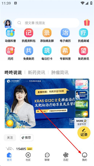1、打開(kāi)咚咚腫瘤科APP,點(diǎn)擊導(dǎo)航欄我的。