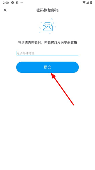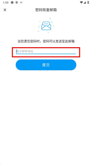 4、填寫好郵箱地址后,點(diǎn)擊提交按鈕,可通過(guò)該郵箱接收重置密碼相關(guān)信息。