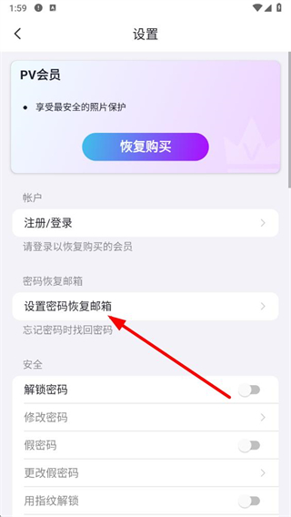 2、在設(shè)置頁(yè)面中,找到并點(diǎn)擊設(shè)置密碼恢復(fù)郵箱選項(xiàng)。