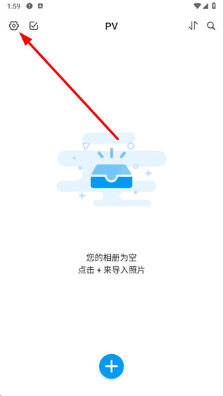 1、打開PV私密相冊(cè)管家,在相冊(cè)界面點(diǎn)擊左上角的設(shè)置圖標(biāo),進(jìn)入設(shè)置頁(yè)面。