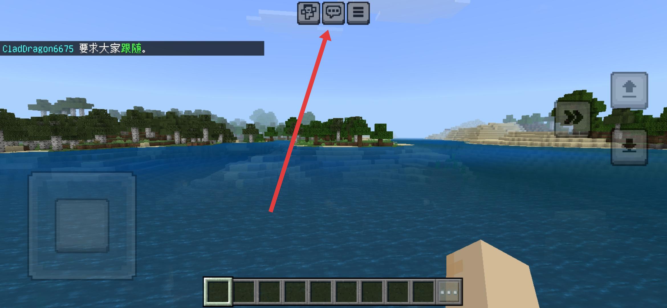 2、進入我們創(chuàng)造的場景游戲后,我們這邊需要點擊界面頂部中間的聊天對話框的圖標,調(diào)出聊天界面。