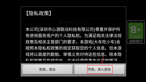 1、首次啟動(dòng)需仔細(xì)閱讀用戶協(xié)議,確認(rèn)后點(diǎn)擊同意按鈕即可進(jìn)入游戲主界面。