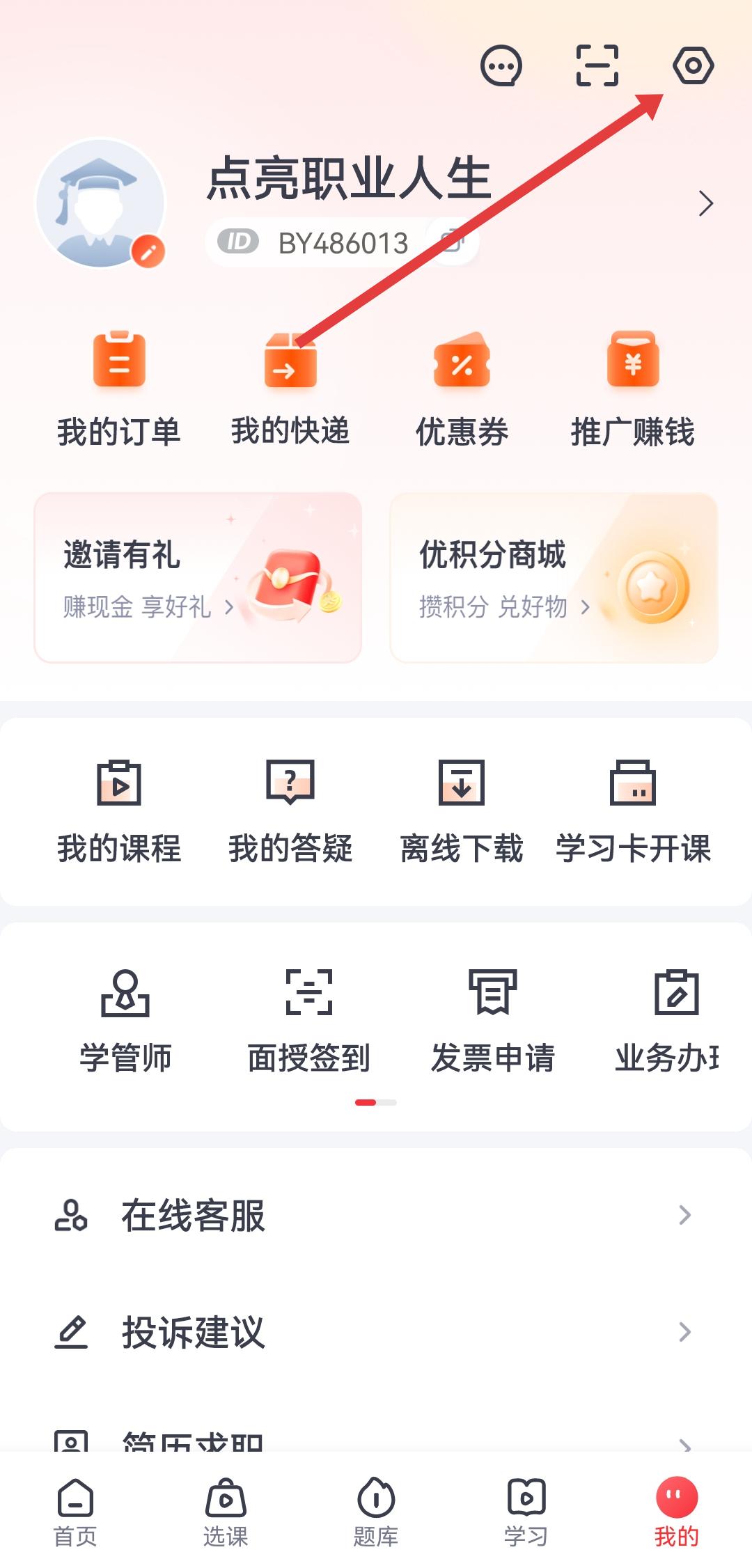 1、進(jìn)入優(yōu)路教育APP我的頁面,點(diǎn)擊右上角設(shè)置圖標(biāo),進(jìn)入設(shè)置界面。