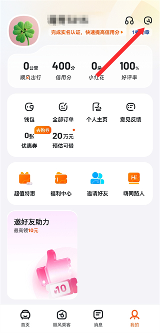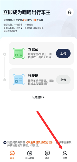 1、打開(kāi)嘀嗒出行APP,點(diǎn)擊底部導(dǎo)航欄的我的,進(jìn)入個(gè)人頁(yè)面。