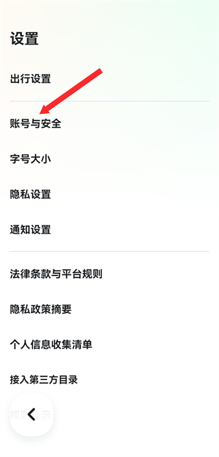 3、在設(shè)置的頁(yè)面,點(diǎn)擊賬號(hào)與安全選項(xiàng),進(jìn)入賬號(hào)與安全頁(yè)面。