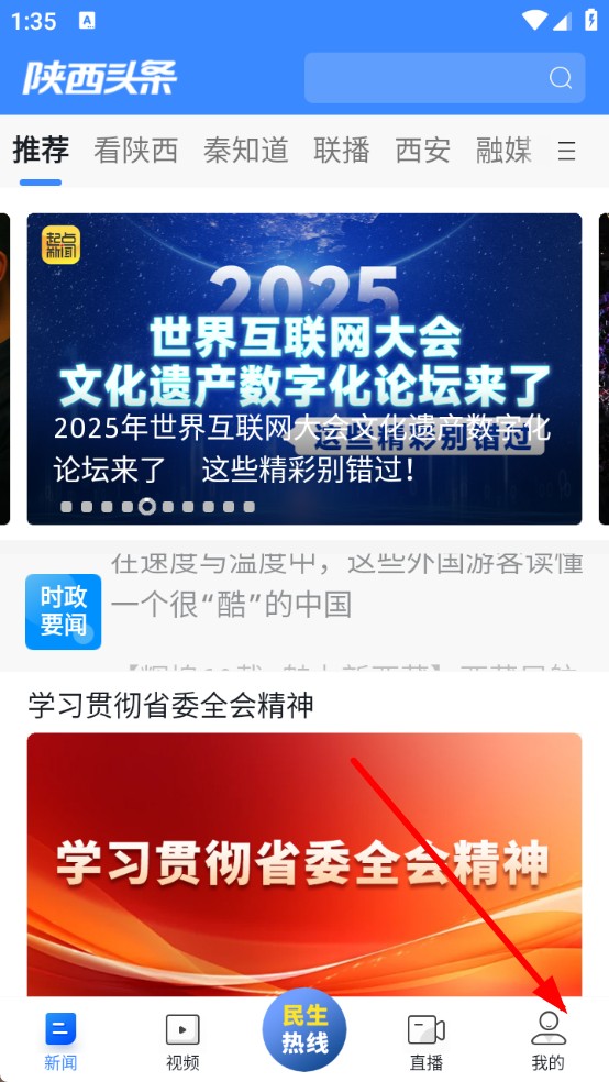 1、打開陜西頭條APP,點(diǎn)擊底部導(dǎo)航欄中的我的,進(jìn)入個(gè)人頁面。