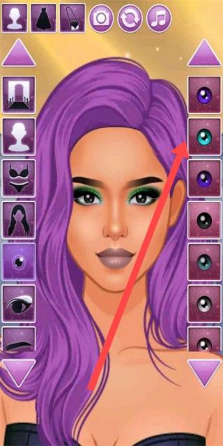 2、化妝步驟細(xì)致操作:通過(guò)點(diǎn)擊拖拽涂抹等操作完成底妝眼妝腮紅等化妝流程,利用貼紙?zhí)匦劳仍卦鎏韸y容亮點(diǎn)。