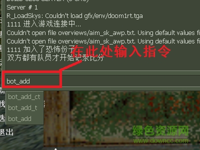 4.在控制臺的輸入欄處,輸入“bot_add_ct”是添加反恐精英;輸入“bot_add_t”是添加恐怖分子,輸入后點擊右下角的“submit”,每輸入提交一次可添加一個機器人,玩家根據(jù)需要添加電腦人數(shù)量吧