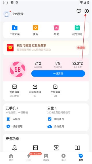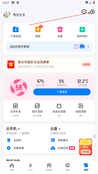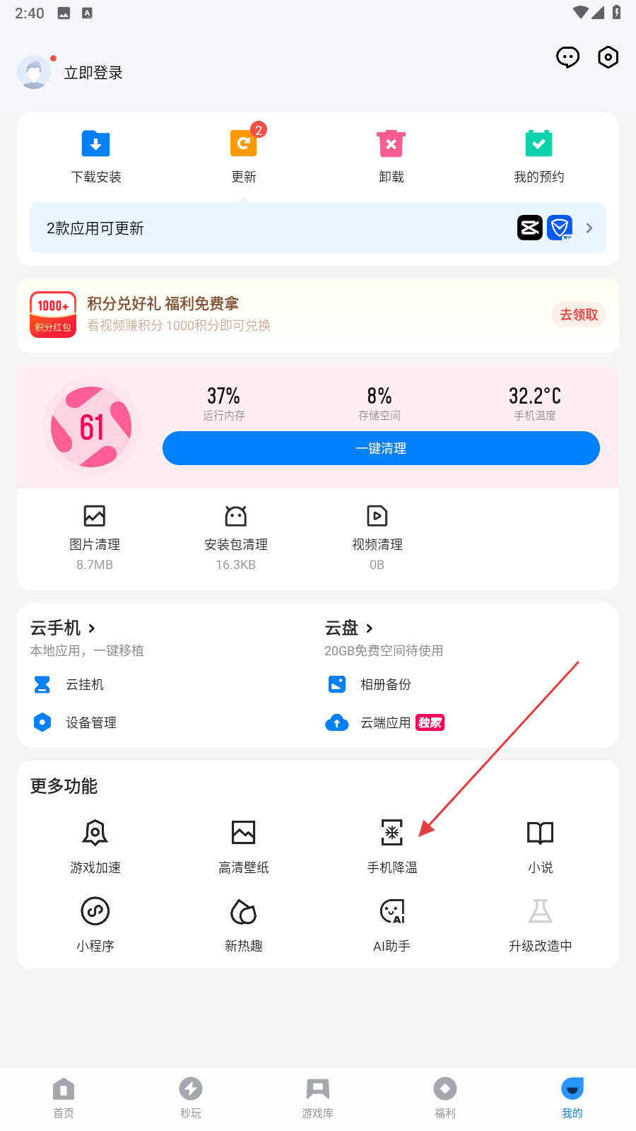 3、進(jìn)入個(gè)人主頁(yè)內(nèi),點(diǎn)擊手機(jī)降溫的功能按鈕。