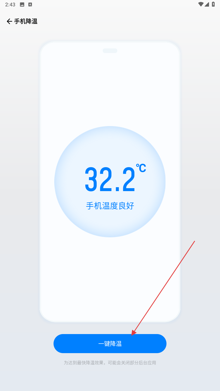 4、在該頁(yè)面內(nèi),點(diǎn)擊一鍵降溫的按鈕即可。