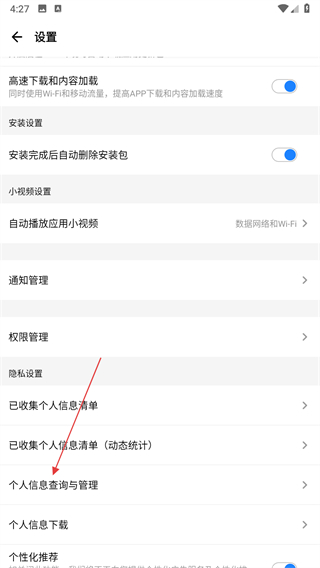 2、進(jìn)入設(shè)置頁(yè)面后,點(diǎn)擊個(gè)人信息查詢與管理。